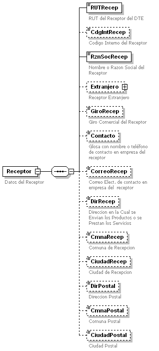 | children | RUTRecep CdgIntRecep RznSocRecep GiroRecep Contacto CorreoRecep DirRecep CmnaRecep CiudadRecep DirPostal CmnaPostal CiudadPostal | ||
